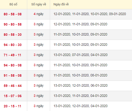 Thống kê lô xiên 3 XSMB trong 30 lần quay gần đây