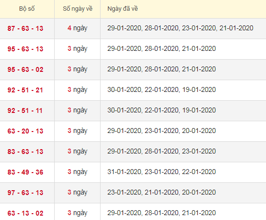 Thống kê lô xiên 3 XSMB trong 30 lần quay gần đây