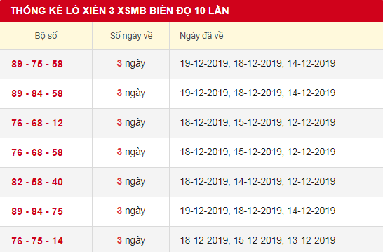 Thống kê lô xiên 3 đã về trong kết quả XSMB ngày hôm qua: 89 – 75 – 58, 89 – 84 – 58, 89 – 84 – 75