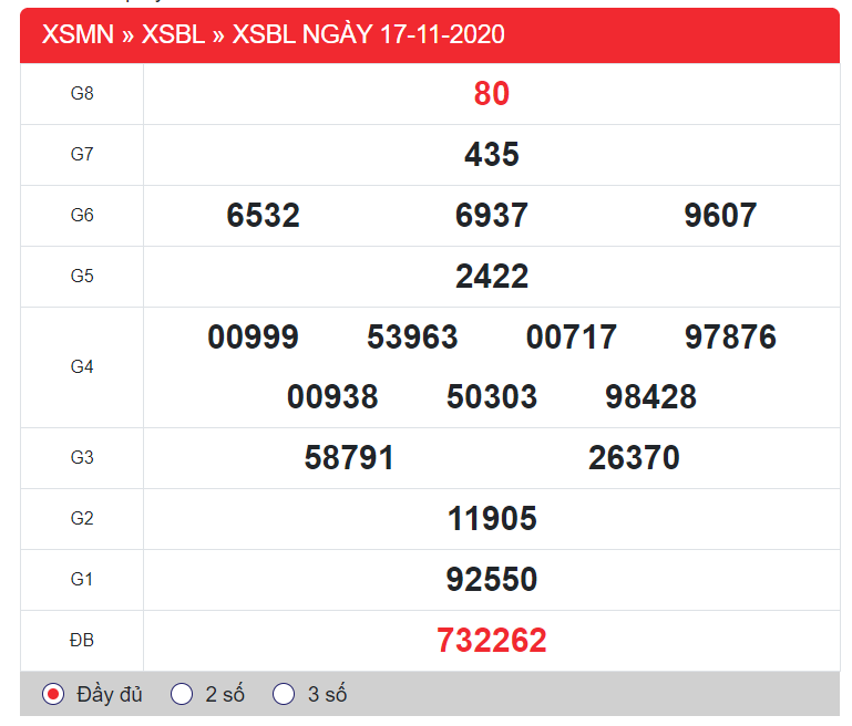 Xem lại kết quả XSBL 17/11/2020