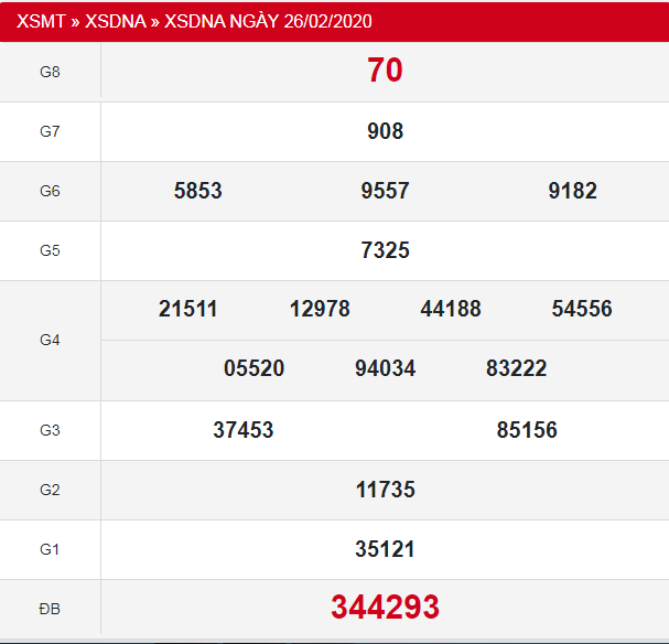Trước khi đi vào chi tiết phần dự đoán XSDNA 29/2/2020, mời anh em cùng nhìn lại bảng kết quả XSDNA thứ 7 tuần trước ngày 22/2/2020