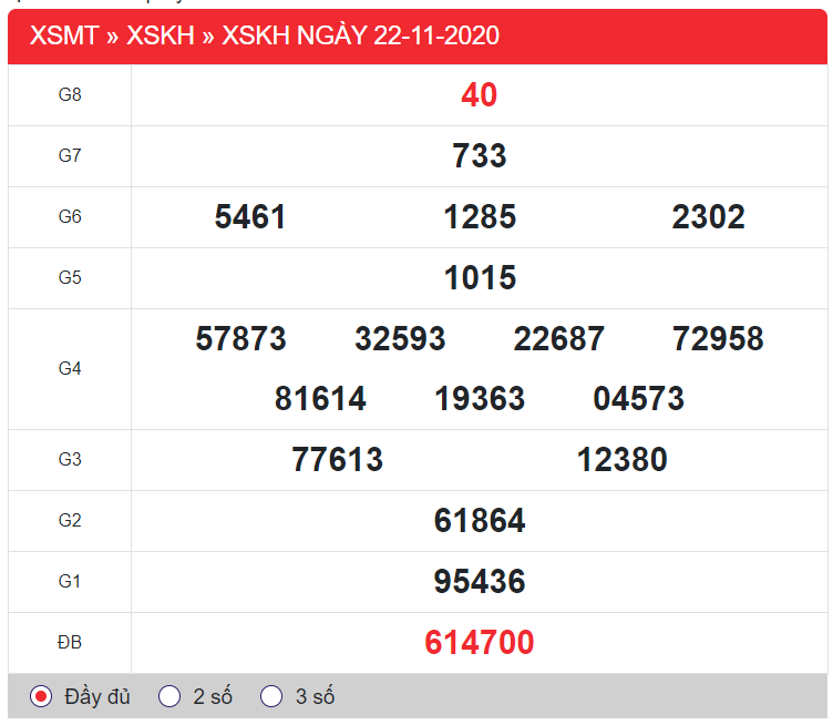 Trước khi đi vào chi tiết phần dự đoán XSKH 25/11/2020, mời anh em cùng nhìn lại bảng kết quả XSKH thứ 4 tuần trước ngày 22/11/2020