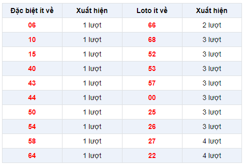 Các số Ít về trong 30 lần quay Xổ số Miền Bắc
