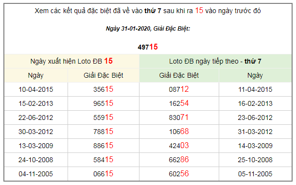Xem các kết quả đặc biệt đã về vào  thứ 7 sau khi ra 15 vào ngày trước đó