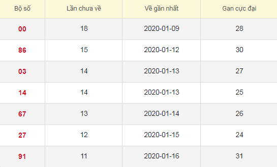 Thống kê Lô tô gan Xổ số Miền Bắc