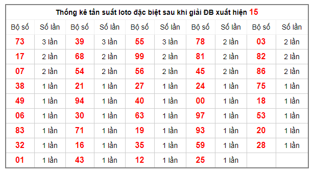 Thống kê tần suất lô tô đặc biệt sau khi giải ĐB xuất hiện 15