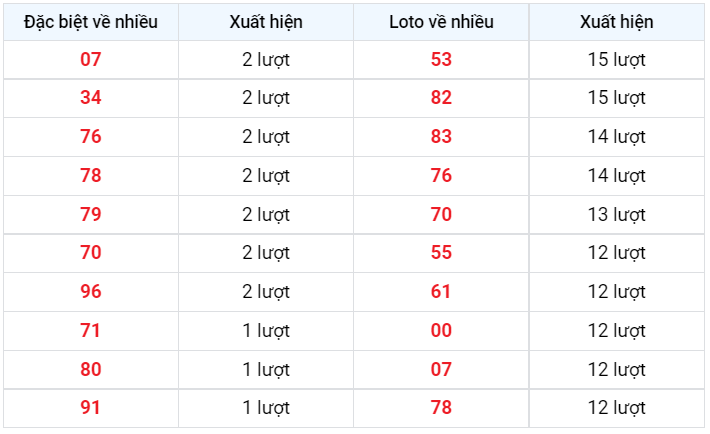 – Các cặp về 2 ngày liên tiếp: 15, 78, 30, 92, 72, 80