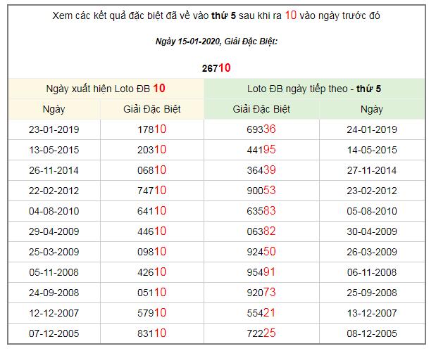 Xem các kết quả đặc biệt đã về vào thứ 5 sau khi ra 10 vào ngày trước đó