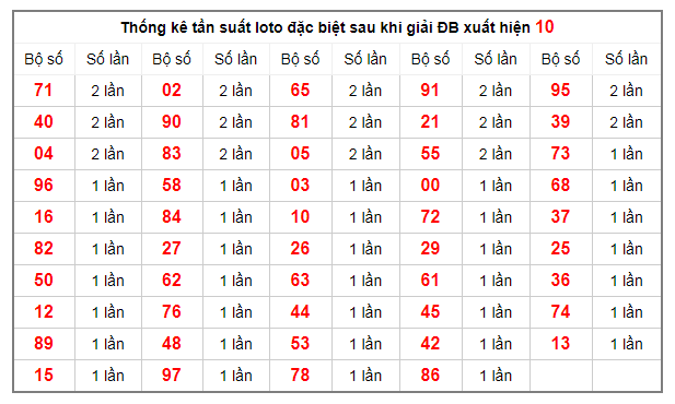 Thống kê tần suất lô tô đặc biệt sau khi giải ĐB xuất hiện 10