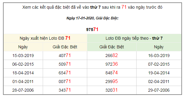 Xem các kết quả đặc biệt đã về vào thứ 7 sau khi ra 71 vào ngày trước đó