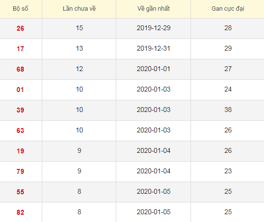 Thống kê Lô tô gan Xổ số Miền Bắc