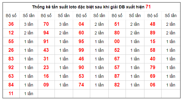 Thống kê tần suất lô tô đặc biệt sau khi giải ĐB xuất hiện 71