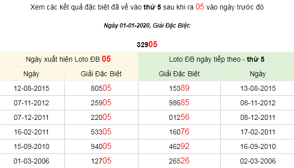 Xem các kết quả đặc biệt đã về vào thứ 5 sau khi ra 05 vào ngày trước đó