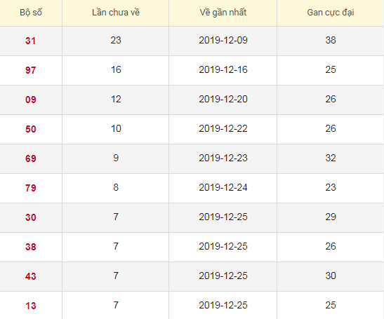 Thống kê Lô tô gan Xổ số Miền Bắc