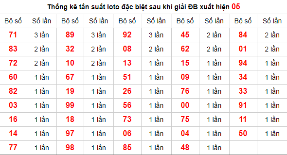 Thống kê tần suất lô tô đặc biệt sau khi giải ĐB xuất hiện 05
