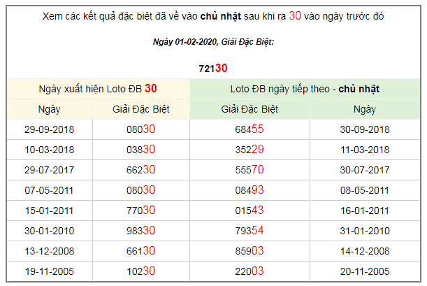 Xem các kết quả đặc biệt đã về vào chủ nhật sau khi ra 30 vào ngày trước đó