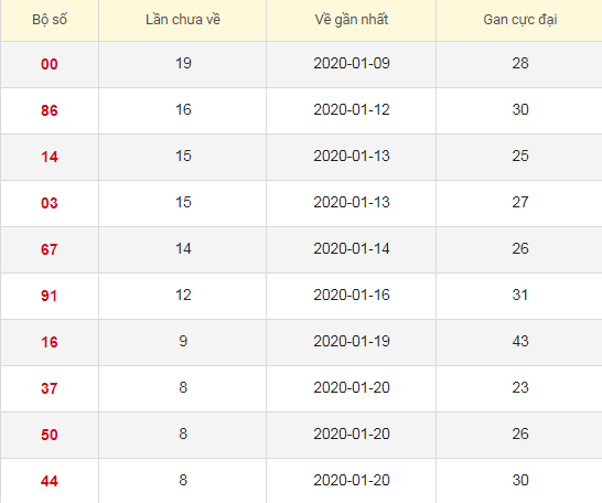 Thống kê Lô tô gan Xổ số Miền Bắc
