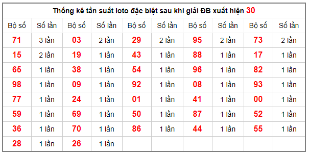 Thống kê tần suất lô tô đặc biệt sau khi giải ĐB xuất hiện 30
