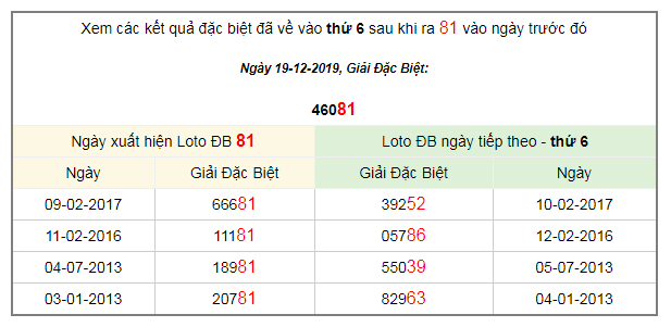 Xem các kết quả đặc biệt đã về vào thứ 6 sau khi ra 81 vào ngày trước đó