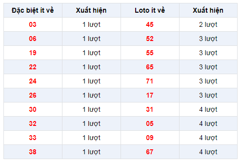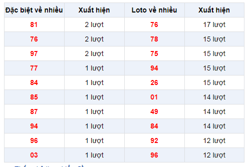 Thống kê bảng đặc biệt XSMB