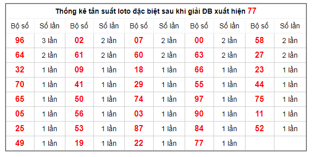 Thống kê tần suất loto đặc biệt sau khi giải ĐB xuất hiện 77