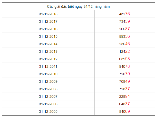 Thống kê đặc biệt XSMB 31/12/2019