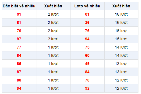 Thống kê bảng đặc biệt XSMB
