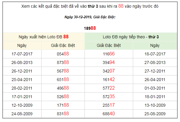 Xem các kết quả đặc biệt đã về vào thứ 3 sau khi ra 88 vào ngày trước đó