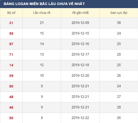 Thống kê Loto gan Xổ số Miền Bắc