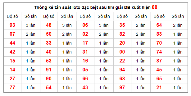 Thống kê tần suất loto đặc biệt sau khi giải ĐB xuất hiện 88