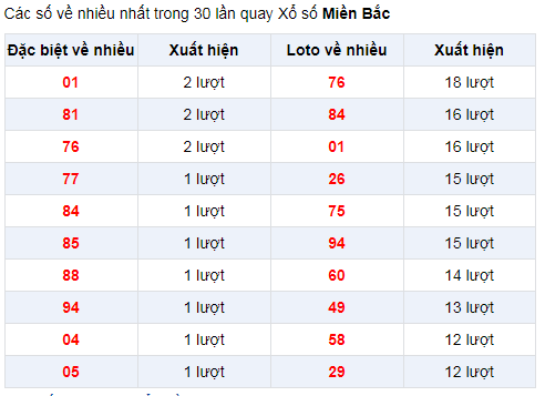 Thống kê tần suất lô tô đặc biệt sau khi giải ĐB xuất hiện 43