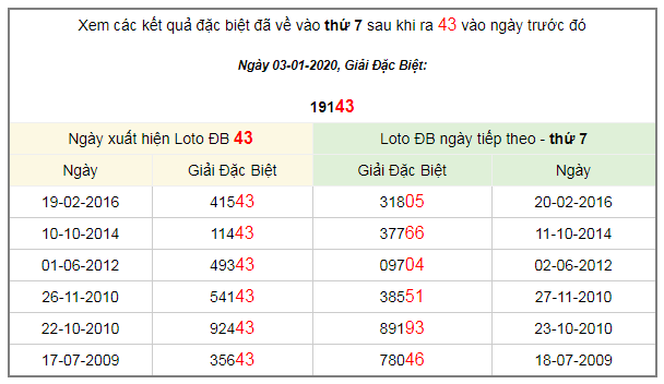 Xem các kết quả đặc biệt đã về vào thứ 7 sau khi ra 43 vào ngày trước đó