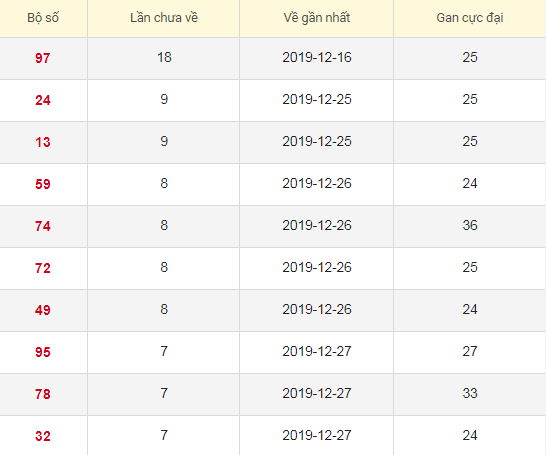 Thống kê Lô tô gan Xổ số Miền Bắc