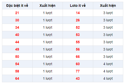 Các số Ít về trong 30 lần quay Xổ số Miền Bắc