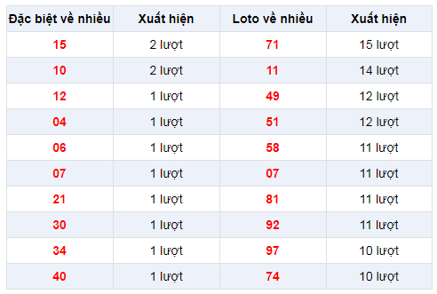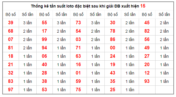 Thống kê tần suất lô tô đặc biệt sau khi giải ĐB xuất hiện 15