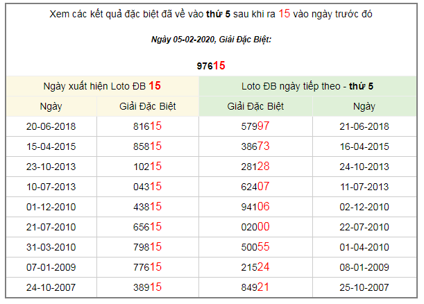 Xem các kết quả đặc biệt đã về vào thứ 5 sau khi ra 15 vào ngày trước đó