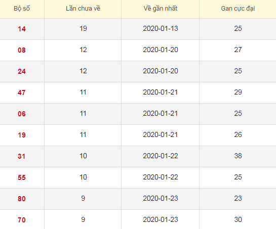 Thống kê Lô tô gan Xổ số Miền Bắc