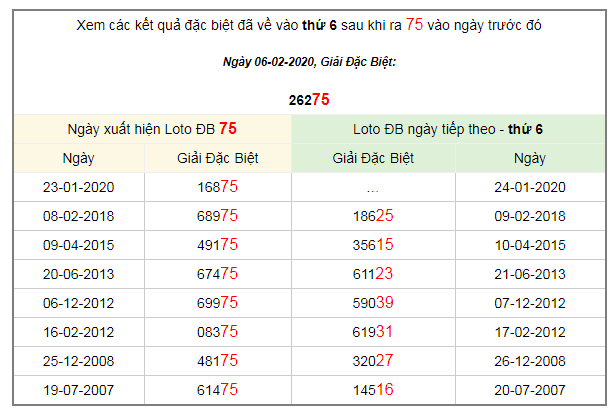 Xem các kết quả đặc biệt đã về vào thứ 6 sau khi ra 75 vào ngày trước đó