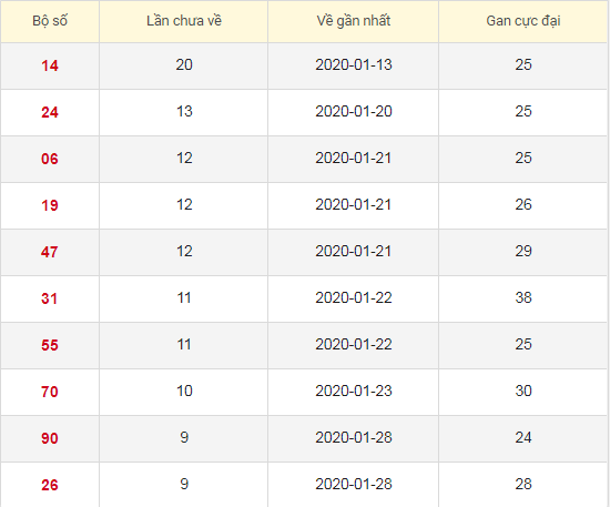 Các số Ít về trong 30 lần quay Xổ số Miền Bắc