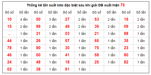 Thống kê tần suất lô tô đặc biệt sau khi giải ĐB xuất hiện 75