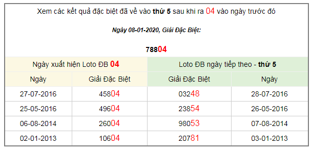 Xem các kết quả đặc biệt đã về vào thứ 5 sau khi ra 04 vào ngày trước đó