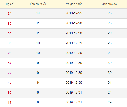 Các số Ít về trong 30 lần quay Xổ số Miền Bắc