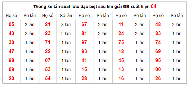 Thống kê tần suất lô tô đặc biệt sau khi giải ĐB xuất hiện 04