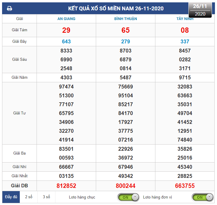 - Giải Đặc biệt An Giang ngày 26/11/2020: 812852