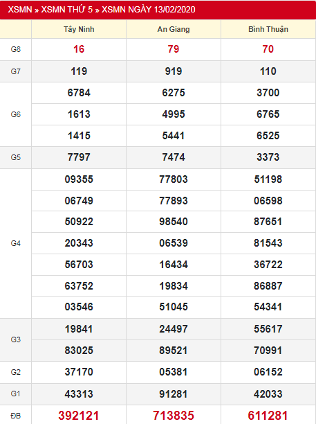 Trước khi đi vào phần dự đoán XSMN thứ 5 hàng tuần, anh em hãy cùng nhìn lại bảng KQXSMN thứ 5 tuần trước để xem các con số may mắn nhất các tỉnh An Giang, Tây Ninh, Bình Thuận là gì nhé!