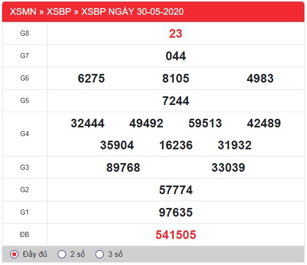 Các kết quả mà ngày trước đó cũng có loto đặc biệt 63Trước khi đi vào chi tiết phần dự đoán XSBP 6/6/2020, mời anh em cùng nhìn lại bảng kết quả XSBP thứ 7 tuần trước ngày 30/5/2020
