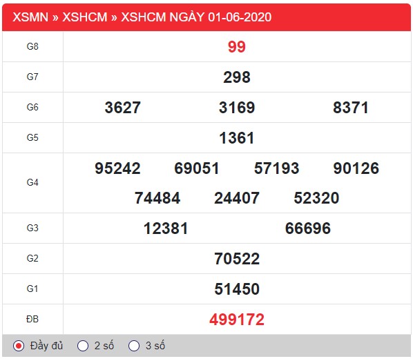 Trong lần quay thưởng xổ số đài TPHCM thứ 7 ngày 1/6/2020, giải đặc biệt đã thuộc về khách hàng sở hữu tấm vé số vô cùng may mắn 499172, giải nhất thuộc về khách hàng có tấm vé số trùng khớp với dãy số 51450 và giải nhì thuộc về khách hàng có tấm vé may mắn trùng với dãy số70522