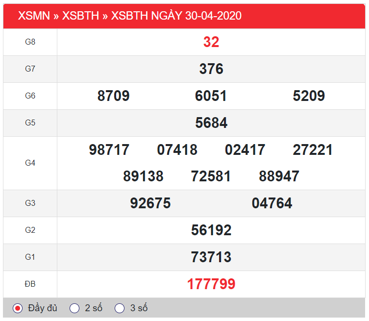 | Số thứ nhất | Số thứ hai | Số thứ ba | Số thứ tư |