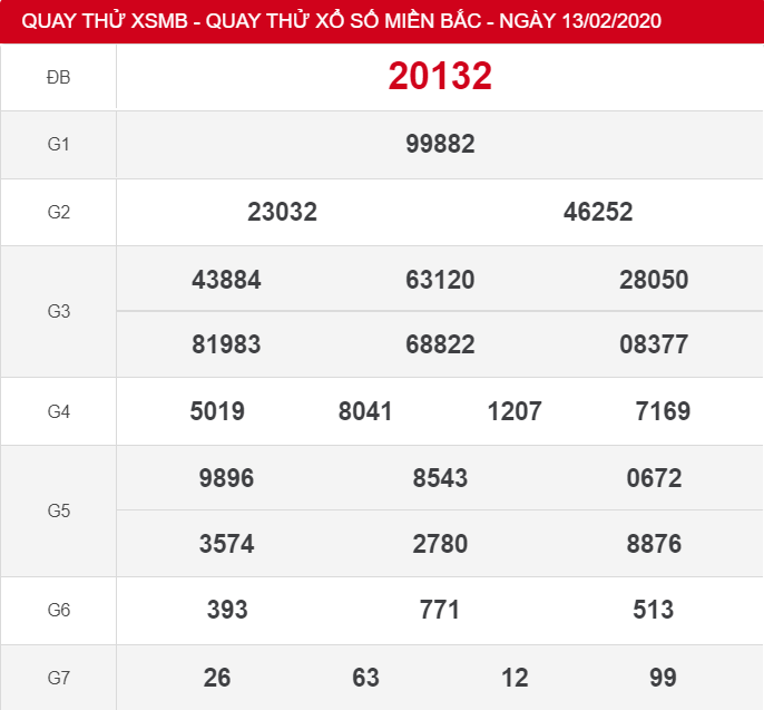 Kết quả quay thử XSMB 13/2/2020