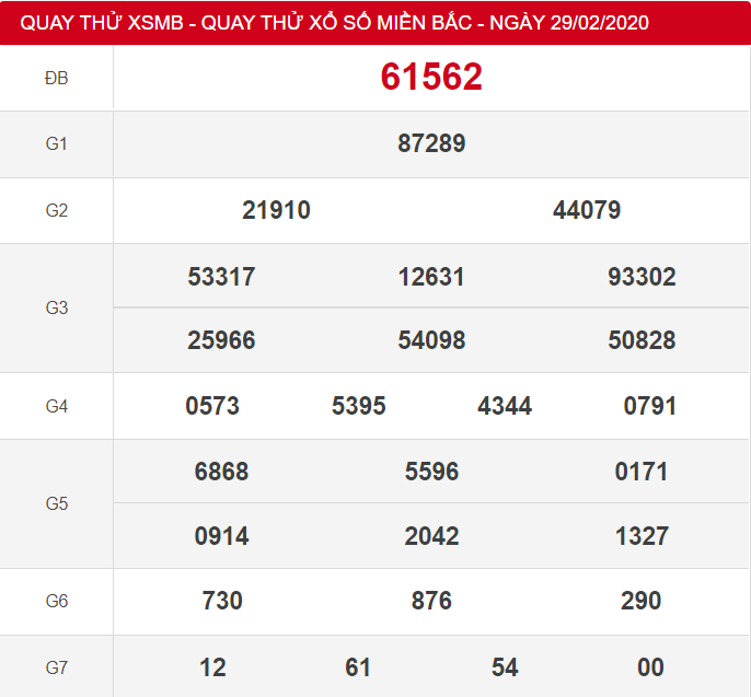 Kết quả quay thử XSMB 29/2/2020